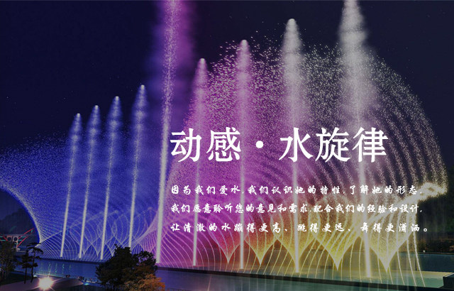 云南龍諾噴泉 — 專(zhuān)業(yè)打造融入地方特色的創(chuàng)意水景噴泉設(shè)計(jì)工程,主要從事園林景觀工程、大型水秀水景工程、昆明音樂(lè)噴泉工程、程控噴泉工程、冷霧造景、水幕電影、數(shù)碼水簾、環(huán)保工程、燈光亮化工程的設(shè)計(jì)與施工。始終堅(jiān)持質(zhì)量為先的工程理念,提供全方位的服務(wù)支撐,堅(jiān)持做充滿(mǎn)藝術(shù)觀感的高品質(zhì)噴泉水景。