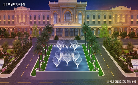 滇和緣昆明871婚禮藝術中心音樂噴泉即將完成。音樂噴泉作為一種集音樂、水景、燈光于一體的綜合性景觀,能夠為婚禮等慶典活動增添更多的浪漫和喜慶氛圍。