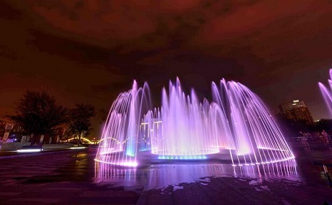 音樂(lè)噴泉隨著音樂(lè)變換,為城市的人們?cè)谝归g增添一份美輪美奐的視覺(jué)和聽(tīng)覺(jué)的盛宴,是快節(jié)奏的城市生活夜間一項(xiàng)頗為浪漫閑適的娛樂(lè)項(xiàng)目